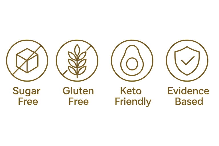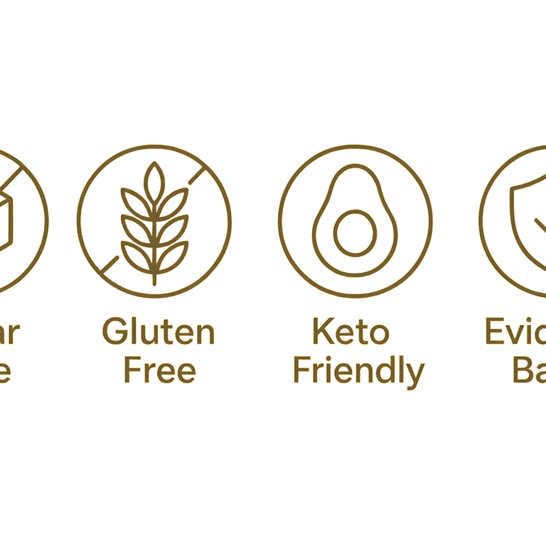 We use only low-carb, sugar-free, gluten-free ingredients, backed by research supporting better metabolic, gut, and brain health. No seed oils. No preservatives. No artificial sweeteners. Just wholesome ingredients chosen for one purpose: to nourish your body while delivering rich, indulgent flavor that satisfies on every level.